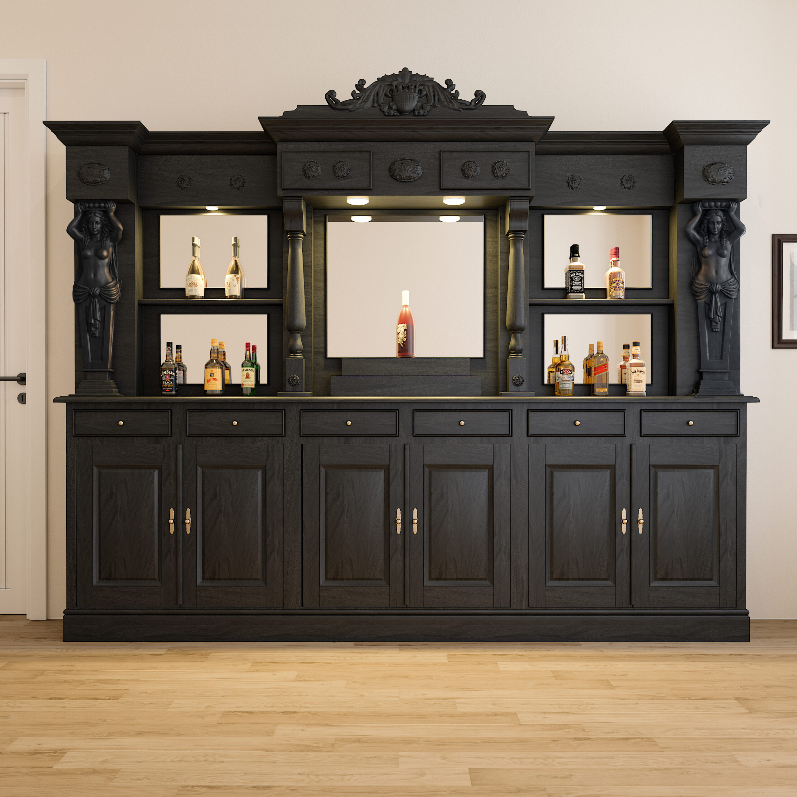 Command the room with a centerpiece that balances Victorian-era opulence with a bold edge. This bar set isn’t just about utility; it’s a masterclass in architecture, featuring intricate carvings, ornate moldings, and a striking matte finish. Whether you’re aging fine whiskey or crafting artisan cocktails, do it with this sophisticated backdrop behind you.